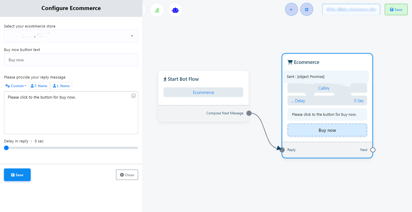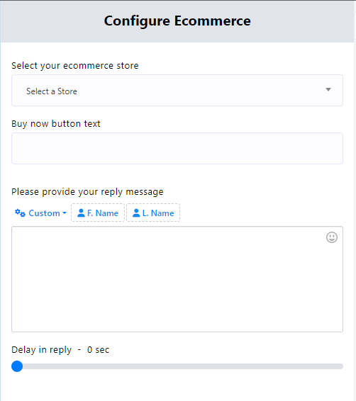 Enter your reply message in the `Please provide your reply message` field. Utilize the `Delay in reply` option if you need to introduce a delay in your response to the customer`s message.