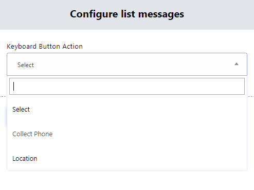 - Next, click on the field within the Keyboard component. This will trigger a drop-down menu, presenting options for collecting either phone numbers or location information.