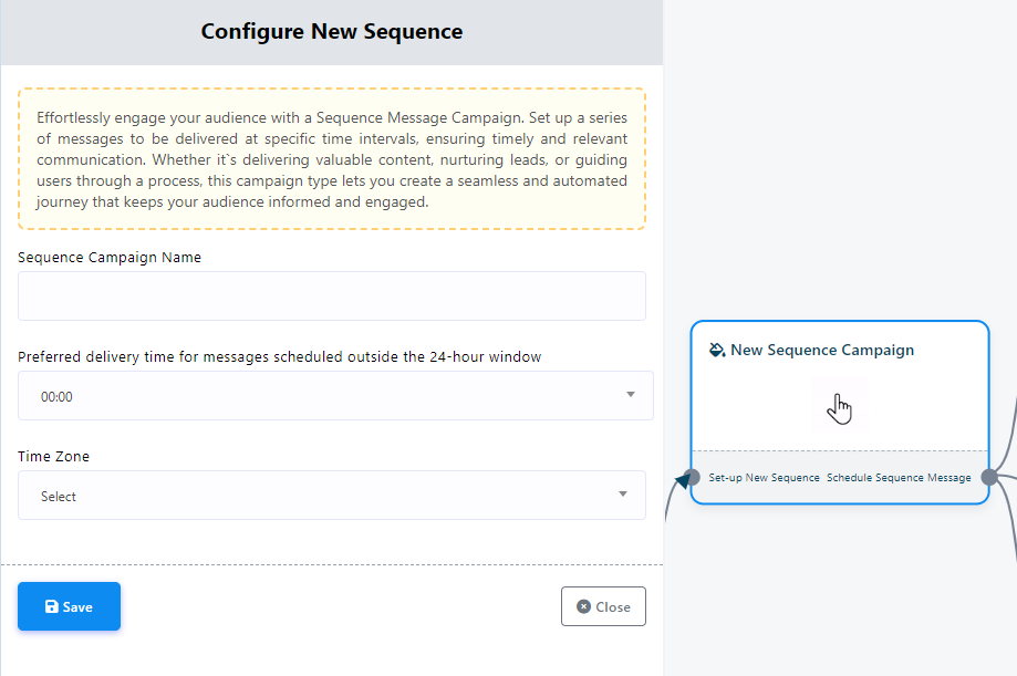 The New Sequence feature is a built-in capability within the platform, designed to empower users to create and customize sequences of messages or actions for chatbots on messaging platforms. This feature aims to elevate the quality of interactions between chatbots and users by enabling the automation of a sequence of responses or actions, triggered by user inputs or predefined triggers.