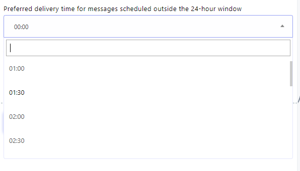 - To determine the delivery timing of your series messages, use the `Preferred delivery time for messages scheduled outside the 24-hour window` field. You can choose from preset times or manually input your preferred delivery time.