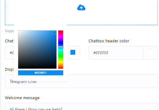 - Select a color from the color palette or input a hexadecimal color code for the chat widget`s header background.