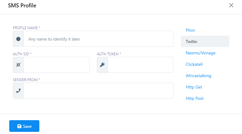 5. Save your settings, and your new SMS Profile will be created.
