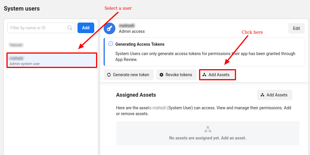 Now you have to add assets for a user. To add assets for a user, select a user and click on the Add Assets button.