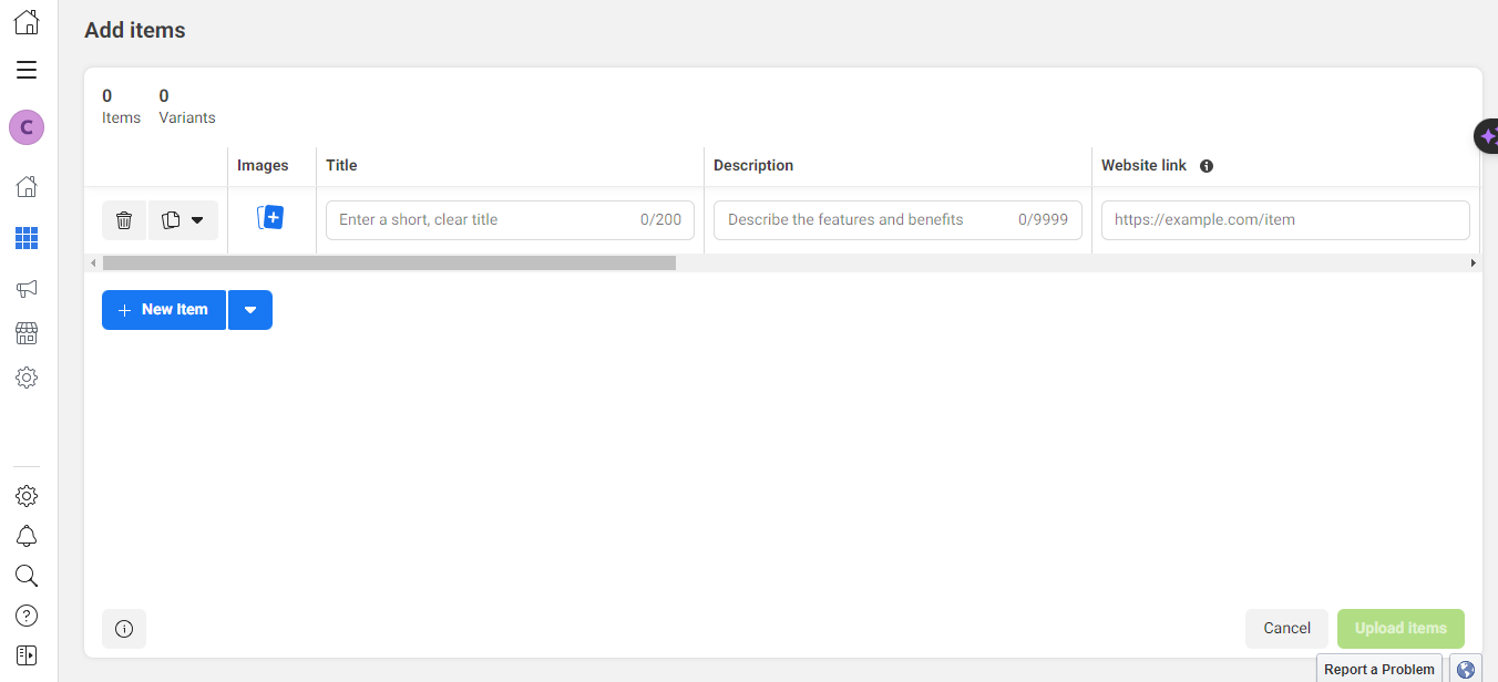- Click `Upload Items`.